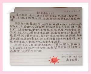 关于新冠肺炎疫情,同学们都有着深刻的感悟并发表了自己的看法。“疫情阶段我们更要努力学习,坚决不允许自身退步”;“疫情阻断了我们之间的距离,但是我们的心离得更近了”;“疫情期间更要强身健体,锻炼足够的体力与意志共抗疫情”。