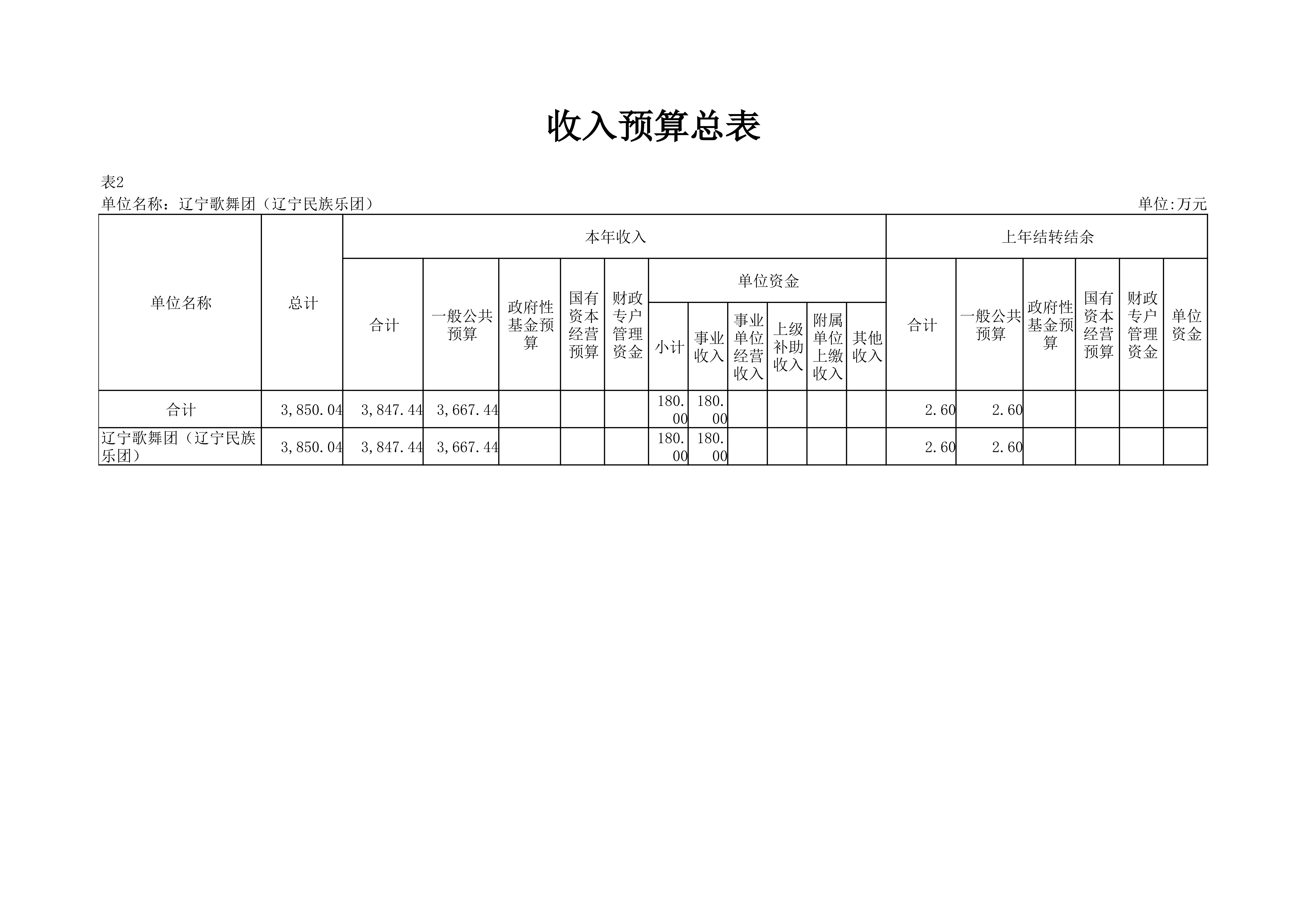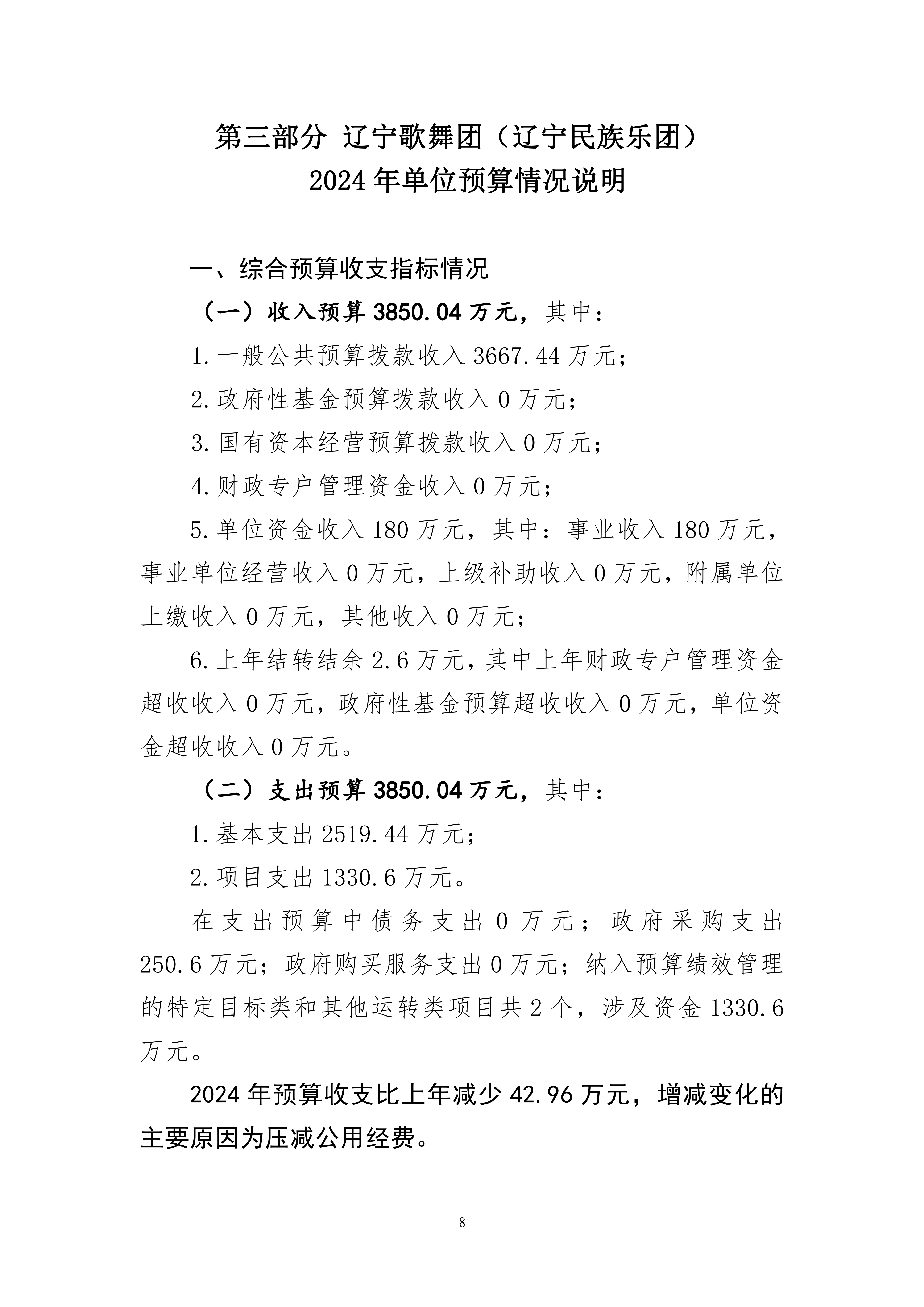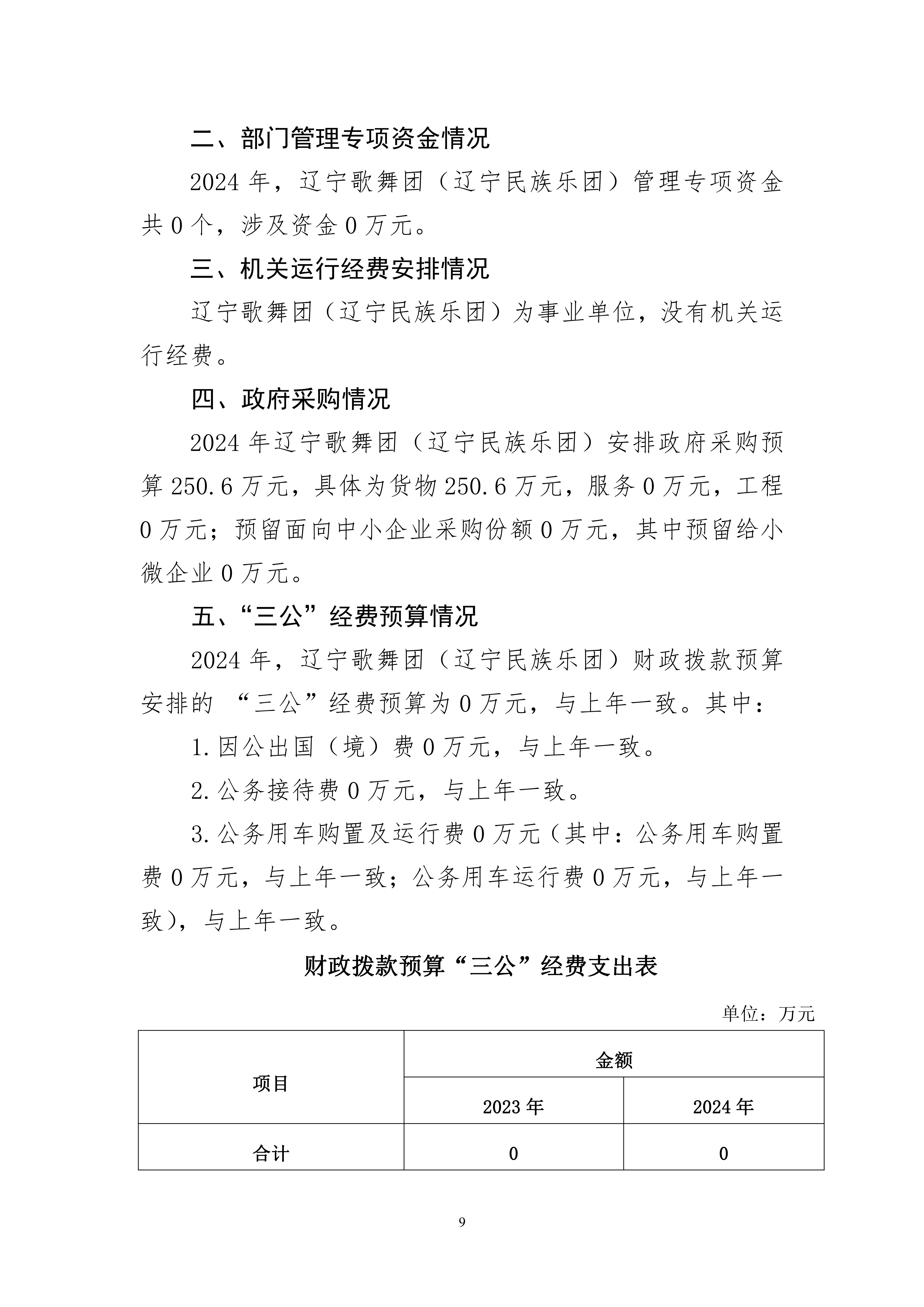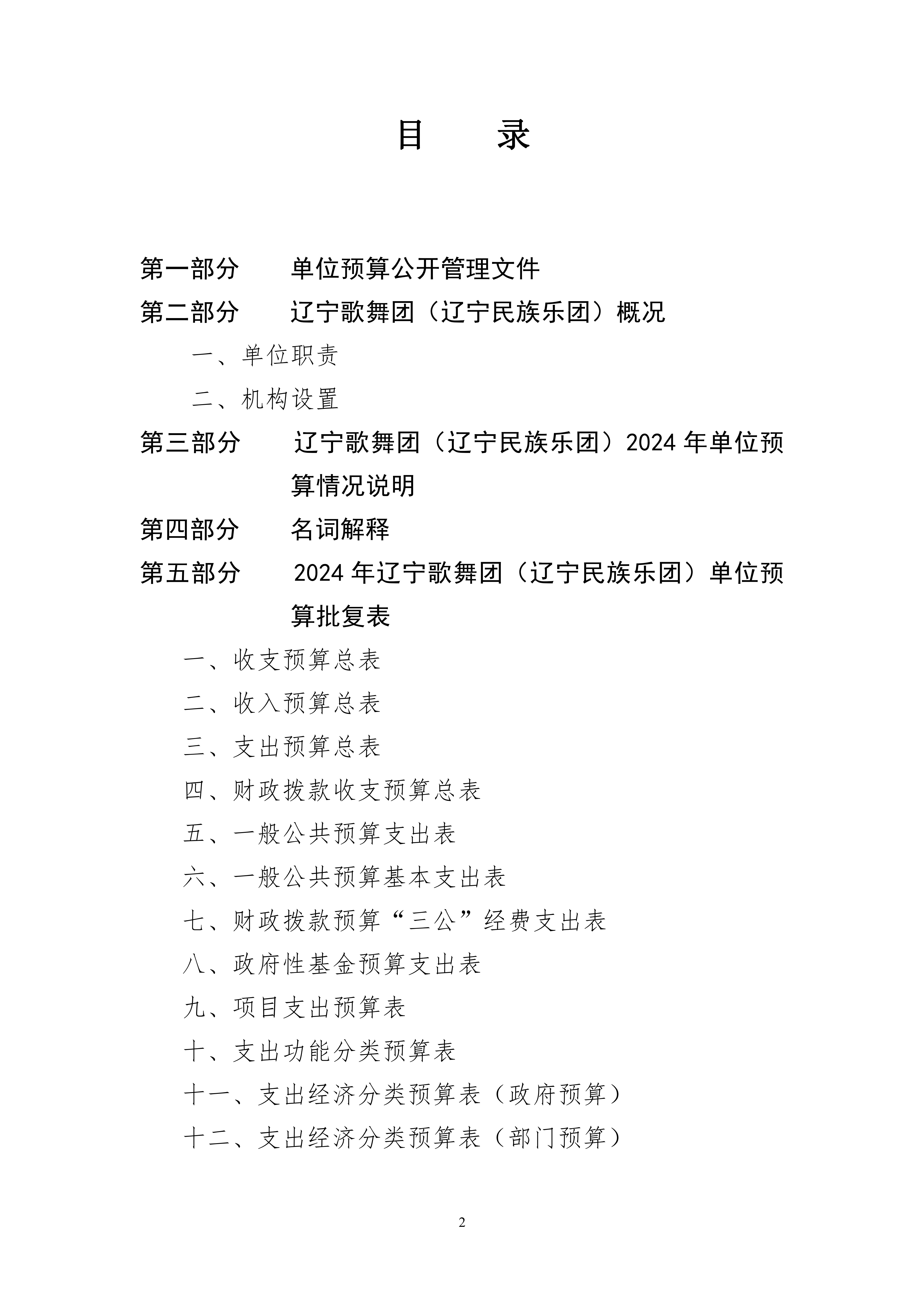 辽宁歌舞团(辽宁民族乐团)2024年度单位预算