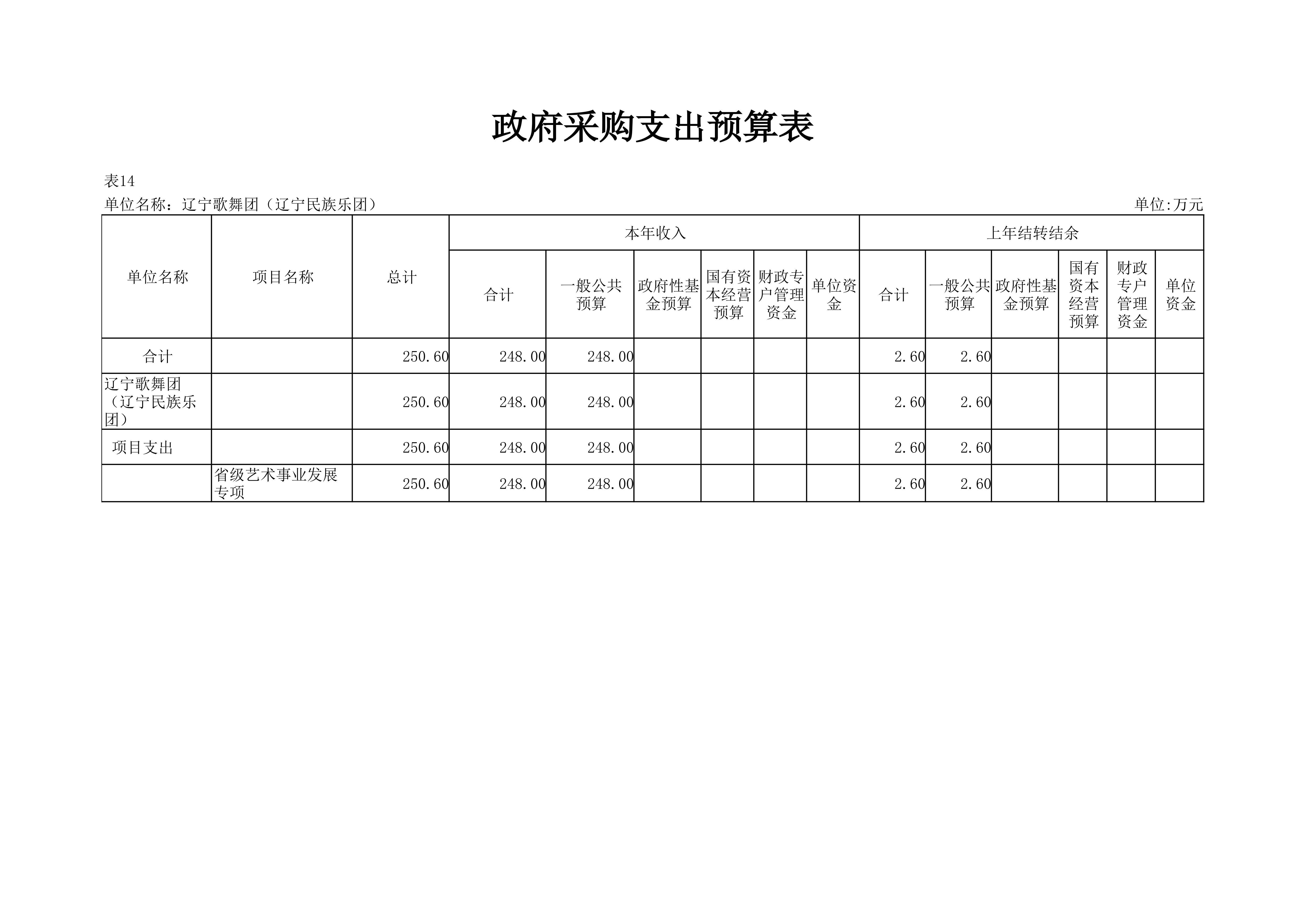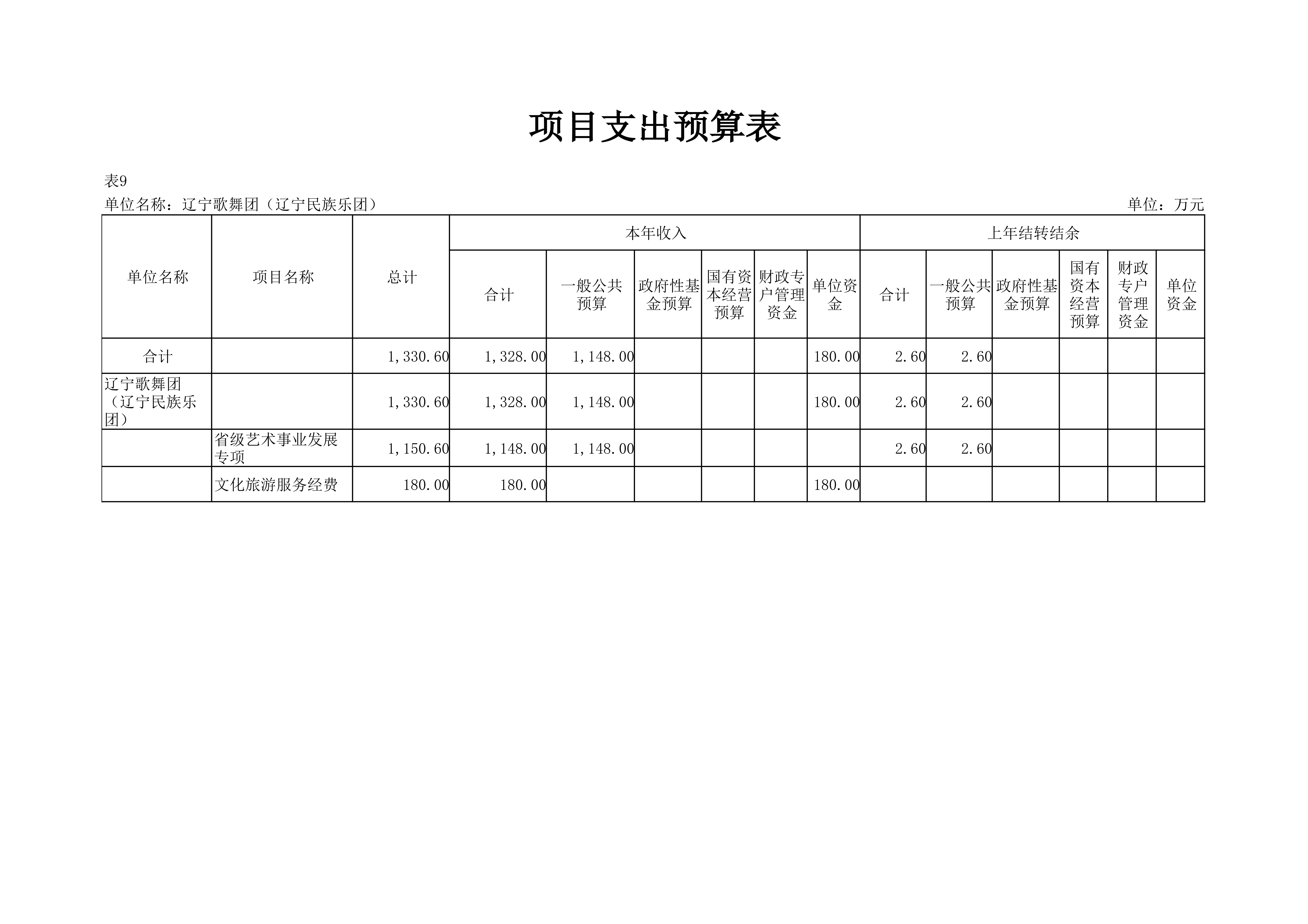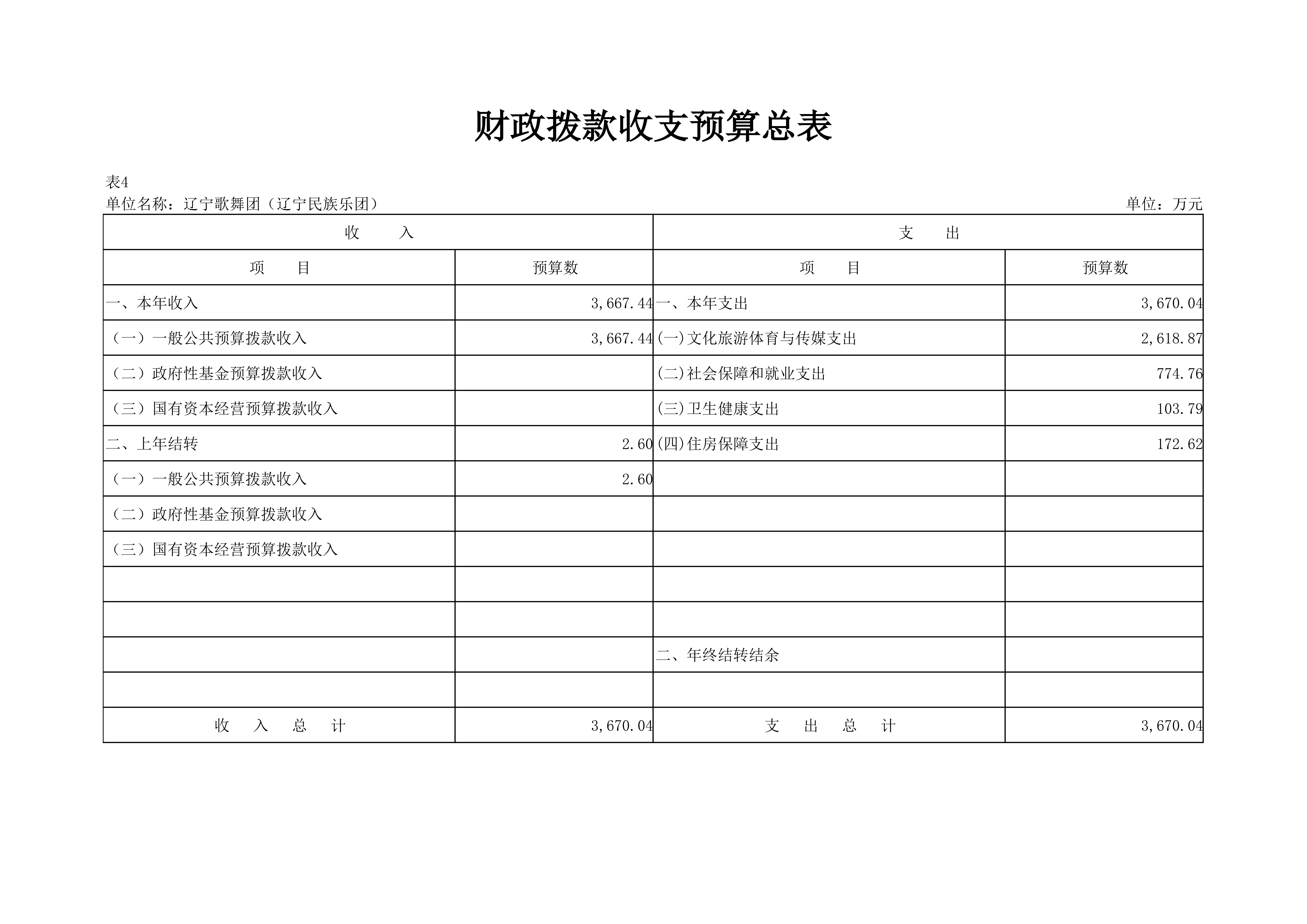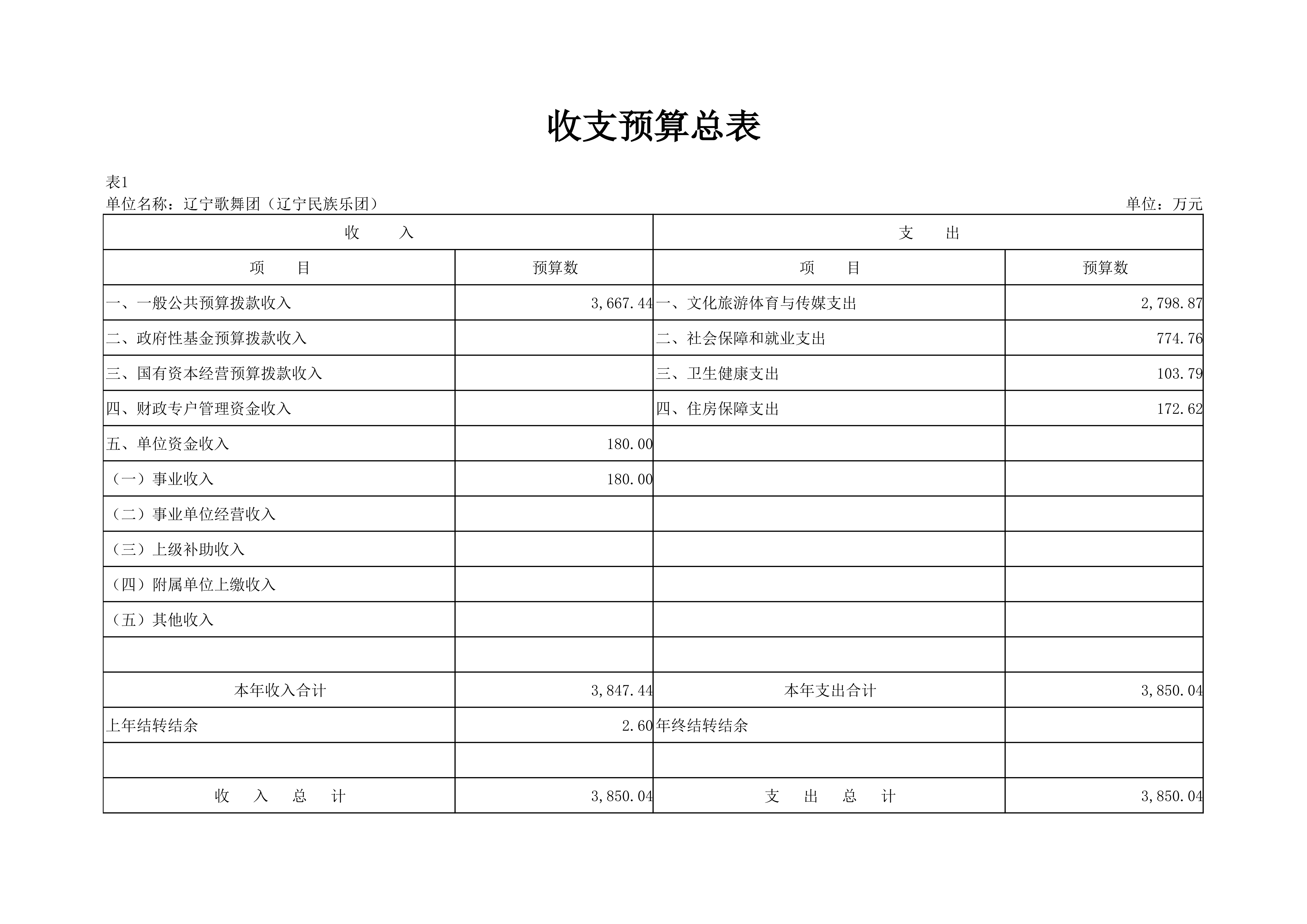 辽宁歌舞团(辽宁民族乐团)2024年度单位预算