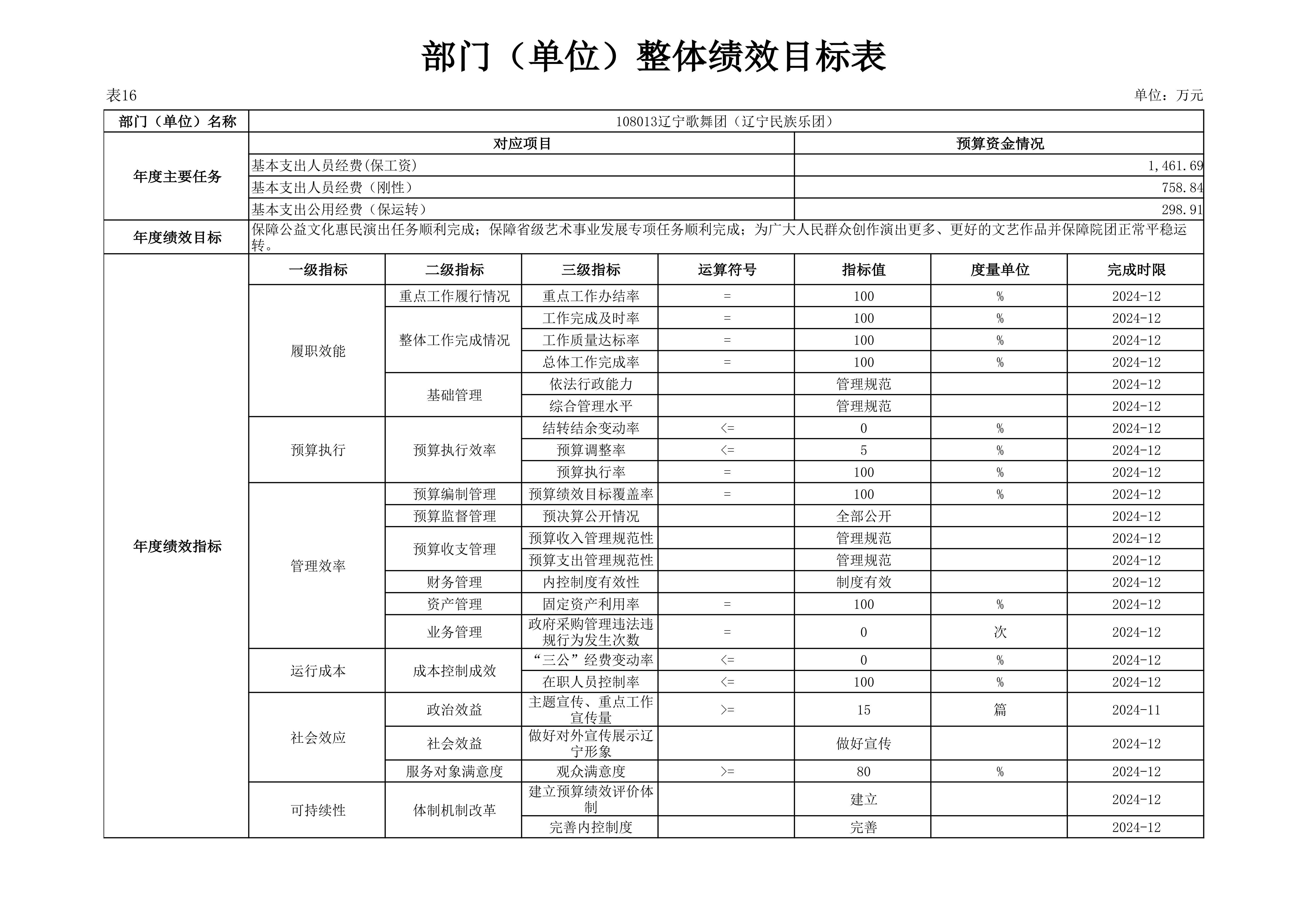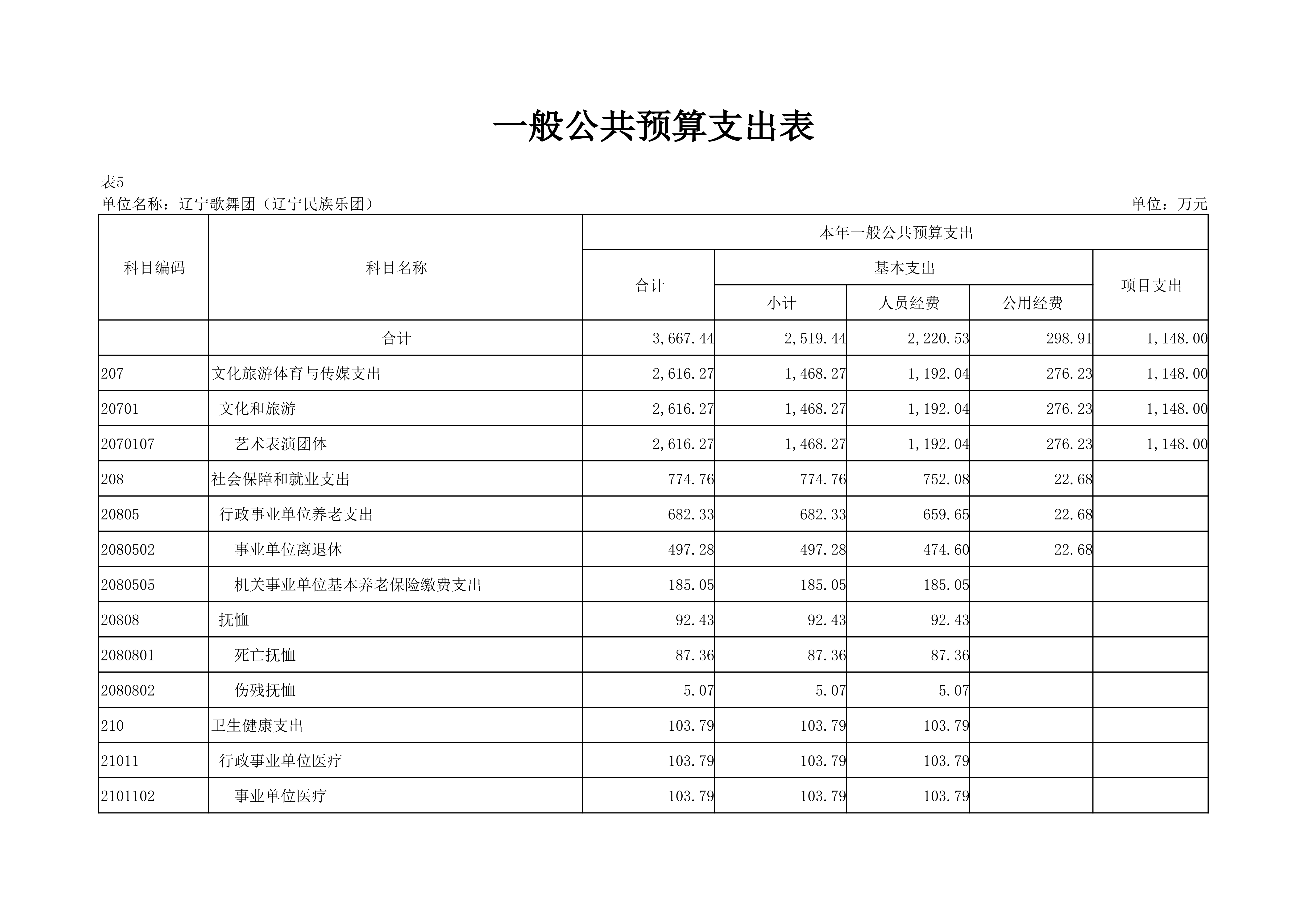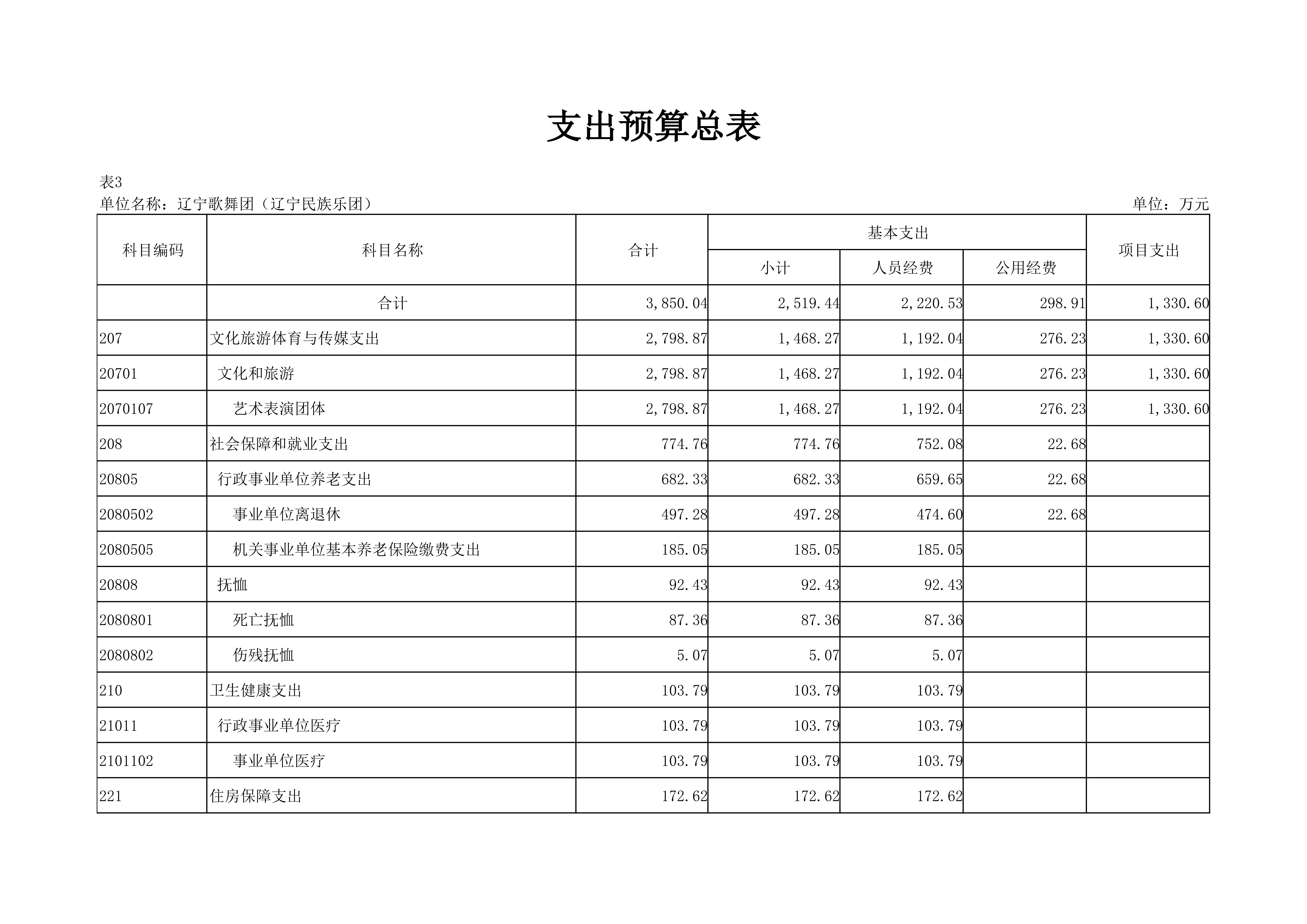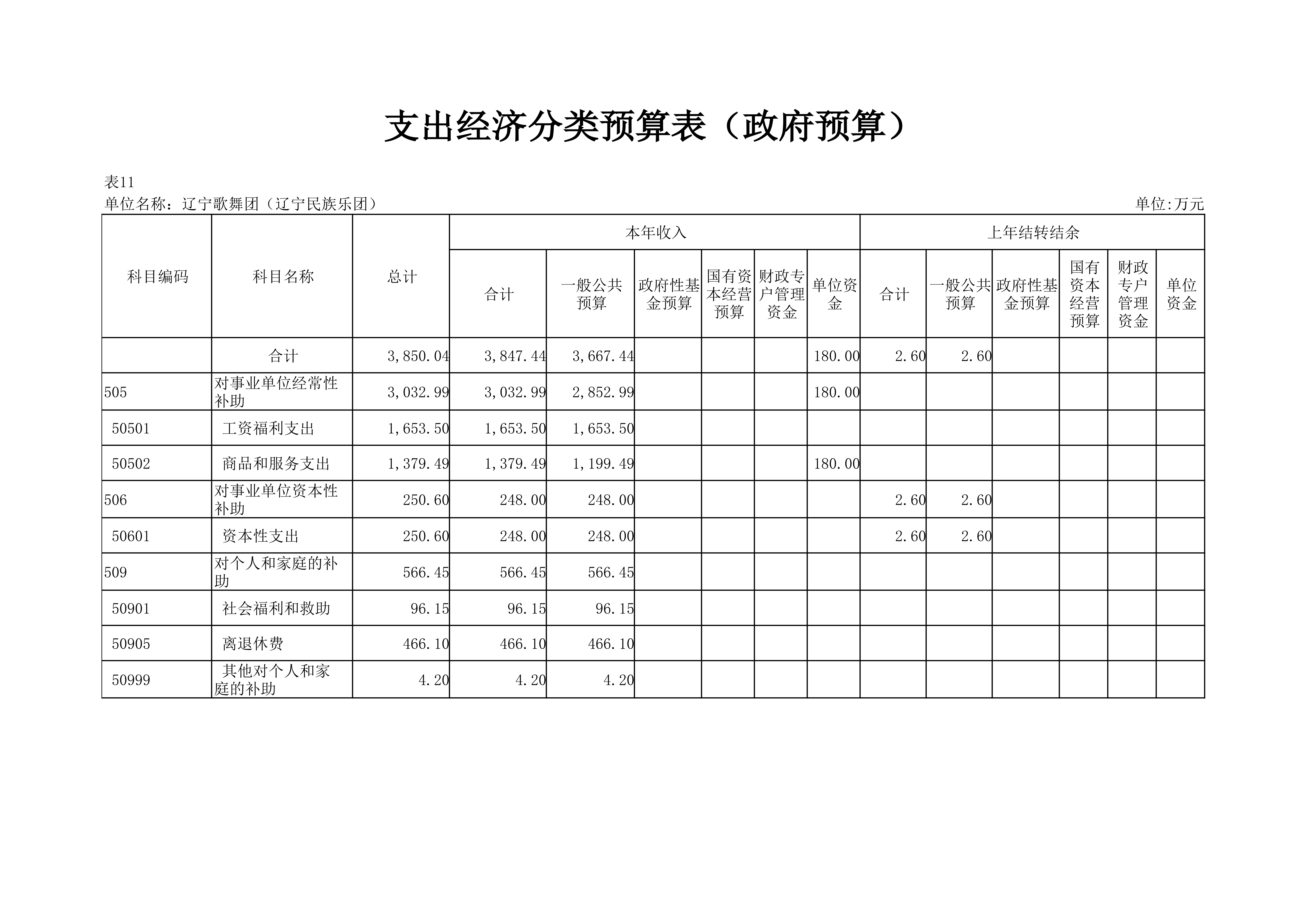 辽宁歌舞团(辽宁民族乐团)2024年度单位预算